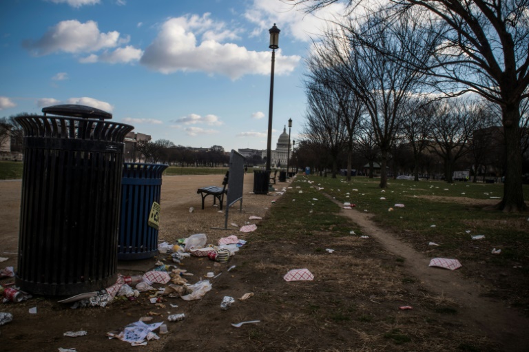 AFP / Eric BARADAT Litter spills out of a public dustbin next to the Washington Monument on the National Mall
