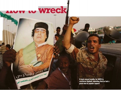 In February 2011, following the arrest of a lawyer representing the families of 1,200 people who died in prison, protests broke out in Benghazi, Libya’s second largest city and later spread to other urban areas. The security forces batded to contain the unrest, which were becoming increasingly violent. By the middle of March 2011, the protests had turned into a full blown rebellion but much of Libya lies bi ruins following NATO’s disastrous intervention the rebels were no match for Gaddafi’s forces. One city after the other, the security forces established order, save for Benghazi, which had become the de facto epicentre of the rebellion. It is at this point that foreign forces stepped in, claiming that Gaddafi was planning to massacre his own people there.