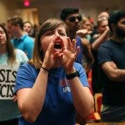 White supremacist shouted down at Florida college speech